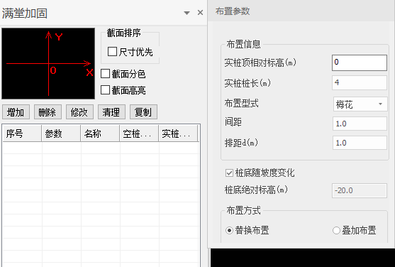 【替换布置】:在某一加固区内,新布置的加固体会替换掉已有的加固图;