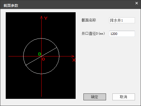 点击【增加】按钮,弹出降水井参数定义对话框。用户可以对降水井名称、直径等参数进行定义(详见图 2.8-14),完成后点击【确定】,自定义的搅拌桩被添加到如图 2.8-13所示的列表中,点击【取消】,退出本次编辑。