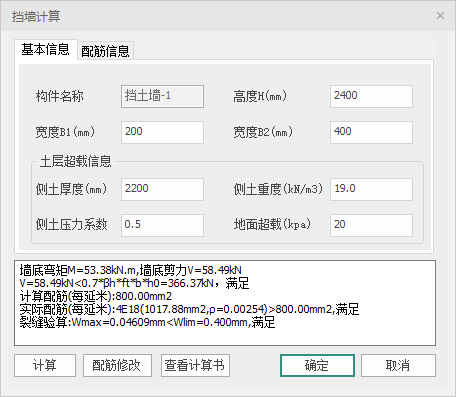 图 4.2-21挡土墙计算配筋信息