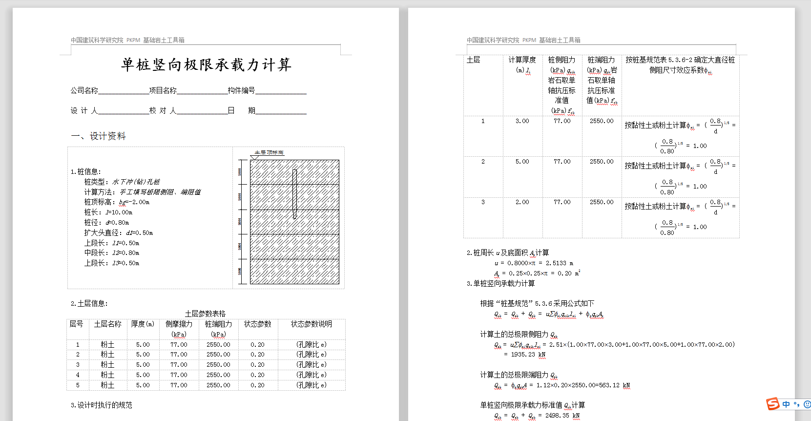 单击【基础工具箱】图标,程序进入基础工具箱界面,如图 4.2-23所示。该工具箱支持大部分基础设计相关的计算,包括地基计算、基础计算、人防计算、岩土计算、地基处理等,并能生成相应的计算书,如图 4.2-24所示。