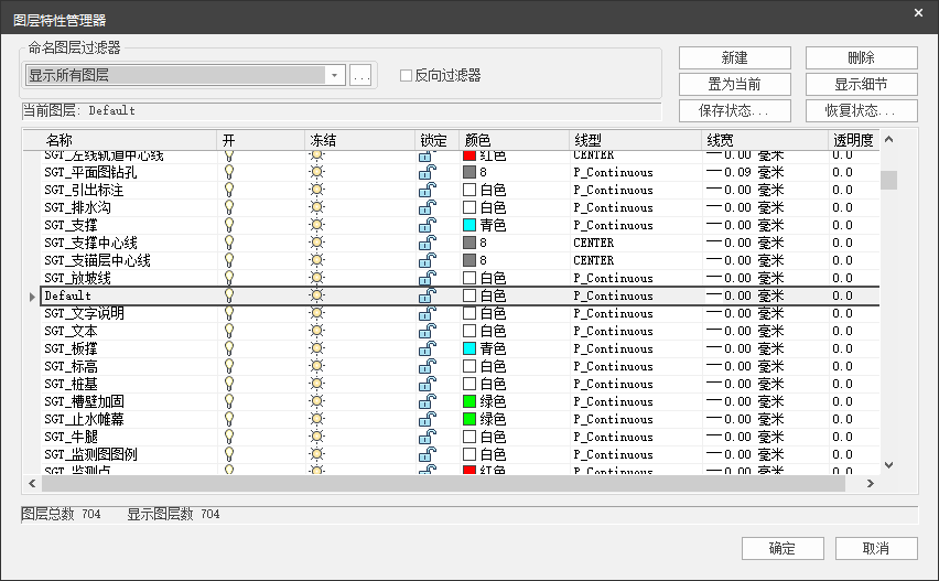 目录 搜索 展开 首页版权与商标说明免责声明第1章 功能特点与界面1.1 功能特点1.2 程序启动界面1.3 用户操作界面1.3.1 操作界面布局1.3.2 项目浏览器及属性栏1.3.3 捕捉工具及追踪面板1.3.4 模型显示调整1.3.5 快捷按钮第2章 结构建模2.1 轴网2.1.1 绘制轴网2.1.2 单根轴线2.2 图纸识别2.2.1 导入DWG2.2.2 调整DWG2.2.3 删除DWG2.2.4 图纸识别2.3 轮廓线2.3.1 轮廓绘制2.3.2 两点布置2.3.3 内外切换2.4 标高表2.6 分区编辑2.6.1 分区打断2.6.2 分区合并2.7 支护构件2.7.1 排桩2.7.2 双排桩2.7.3 地下连续墙2.7.4 SMW工法桩2.7.5 放坡2.7.6 钢板桩2.7.7 冠梁2.7.8 腰梁2.7.9 板撑2.7.10 支撑2.7.11 米字撑2.7.12 锚索/杆2.7.13 联系梁2.7.14 立柱2.7.15 铺盖2.7.16 挡墙2.7.17 导墙2.7.18 排水沟2.7.19 剪刀撑2.7.20 土钉2.8 加固/防水措施2.8.1 加固区定义2.8.2 满堂加固2.8.3 抽条加固2.8.4 换填加固2.8.5 槽壁加固2.8.6 桩间止水帷幕2.8.7 通用止水帷幕2.8.8 降水井2.9 分幅编辑2.9.1 构件分幅2.9.2 分幅调整2.9.3 分幅删除2.10 层间编辑2.10.1 层间复制2.11 材料2.11.1 材料信息2.11.2 交互修改2.12 构件筛选器2.5 基底设置2.5.1 区域划分2.5.2 坡度设置2.5.3 坑中坑第3章 地质基础3.1 坐标转换3.1.1 坐标转换3.2 岩土参数3.2.1 岩土参数3.3 钻孔信息3.3.1 钻孔坐标3.3.2 钻孔柱状图3.3.3 钻孔柱状图显示3.4 地基基础3.4.1 立柱桩布置3.4.2 抗拔桩布置3.4.3 承载桩布置3.4.4 承台布置第4章 计算分析4.1 参数管理4.1.1 总参定义4.1.2 剖切截面4.1.3 录入计算结果4.2 计算工具集4.2.1 冠腰梁计算4.2.2 支撑计算4.2.3 连续钢梁验算4.2.4 钢支撑验算4.2.5 钢立柱验算4.2.6 铺盖计算4.2.7 挡墙计算4.2.8 基础工具箱4.3 设计结果4.3.1 地连墙配筋修改4.3.2 地连墙配筋表4.3.3 排桩配筋参数修改4.3.4 排桩配筋表4.4 计算书4.4.1 计算书生成第5章 图纸清单5.1 图纸设置5.1.1 图纸参数5.1.2 图层设置5.2 围护结构施工图5.2.1 设计总说明5.2.2 剖切出图5.2.3 基坑监测平面图5.2.4 基坑监测剖面图5.2.5 施工图生成5.3 图纸管理5.3.1 总图编辑5.3.2 大样图管理5.3.3 监测点插入5.3.4 插图衬图5.3.5 衬图调整5.3.6 图纸导出DWG5.4 算量统计5.4.1 算量参数5.4.2 材料清单5.5 通用文字5.6 通用表格5.7 数据导出 暂无相关搜索结果! 5.1.2 图层设置 点击【图纸设置】弹出如图 5.1-10对话框,可以增加、删除和修改图层,修改内容包括名称、开关、冻结、锁定、颜色、线型、线宽和透明度。同时支持图层的导入和导出,方便同一套图层的复用。 图 5.1-10图层设置