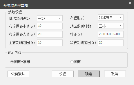 单击【基坑监测图】下拉按钮,选择【基坑监测平面图】,弹出参数设计对话框,如图 5.2-4所示。