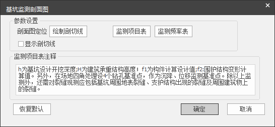 单击【基坑监测图】下拉按钮,选择【基坑监测剖面图】,弹出参数设计对话框,如图 5.2-5所示。