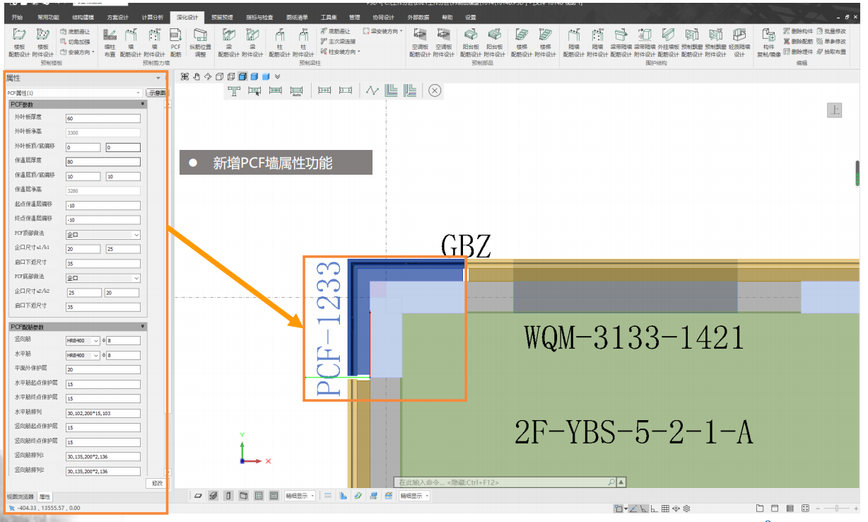 2.2 新增PCF墙板属性功能