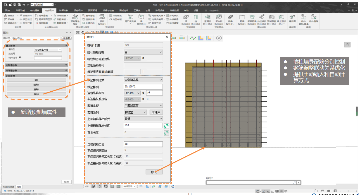2.2 新增预制墙配筋属性栏