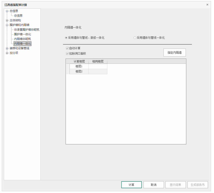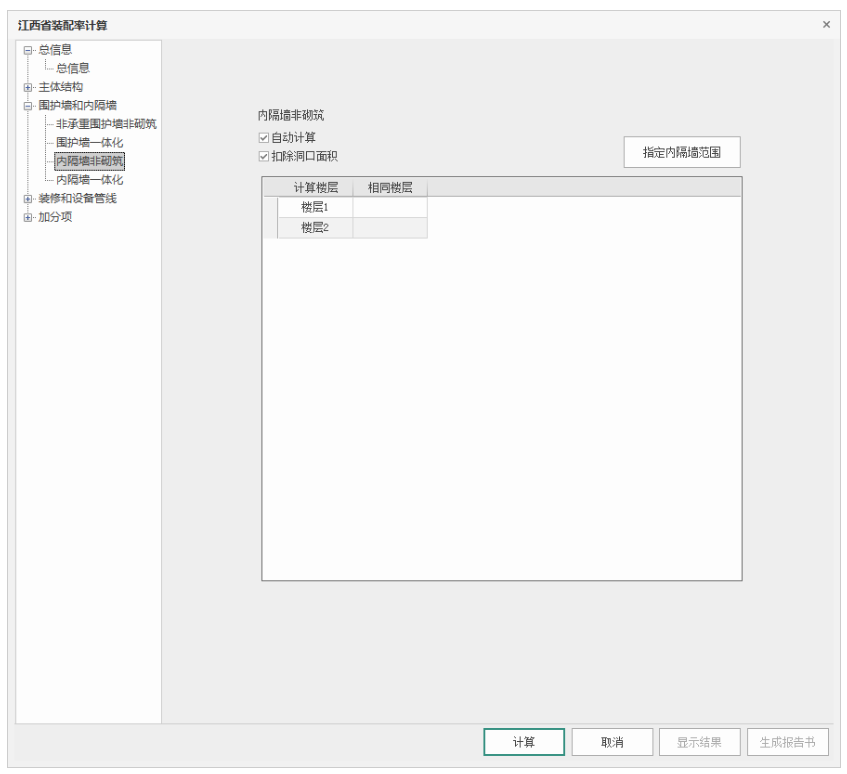 1)勾选自动计算,并指定内隔墙范围(指定操作同上)