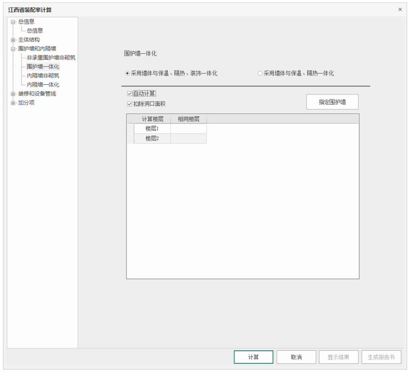 1)选择采用“墙体与保温、隔热、装饰一体化”或“墙体与保温、隔热一体化”