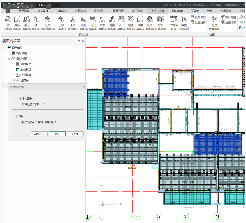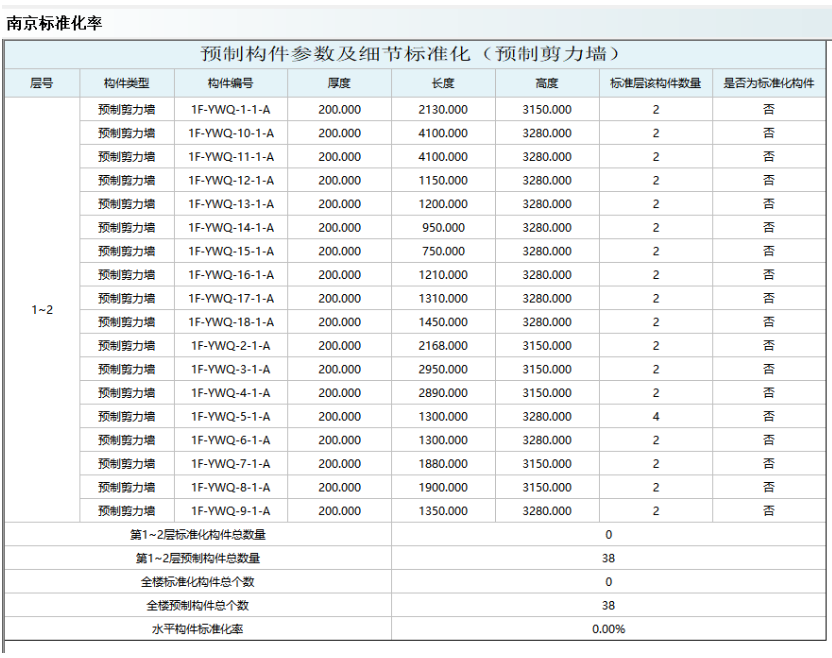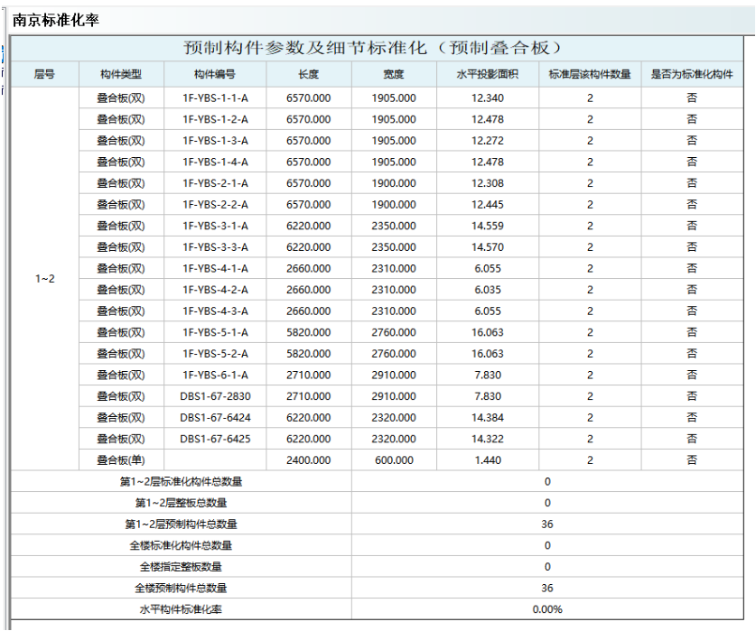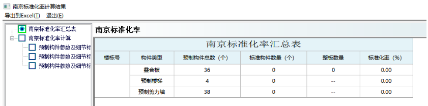 汇总表中会统计模型中的预制构件总数、满足标准构件的数量、整板数量和标准化率: