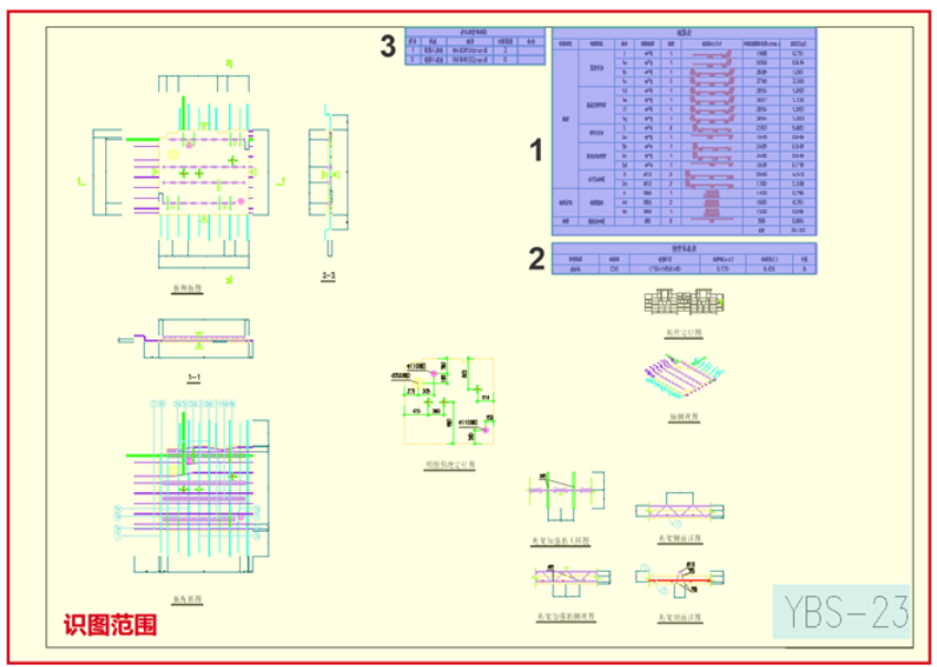 需要注意的是,表格提取范围以识别的图框范围为内为识别对象,构件名称需在图框范围内。同时表格为封闭的图形,则可区分为独立表格,如下图所示,分为构件信息表、钢筋表、水电配件预埋表;反之则识别为一张表格。