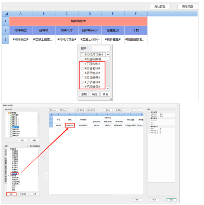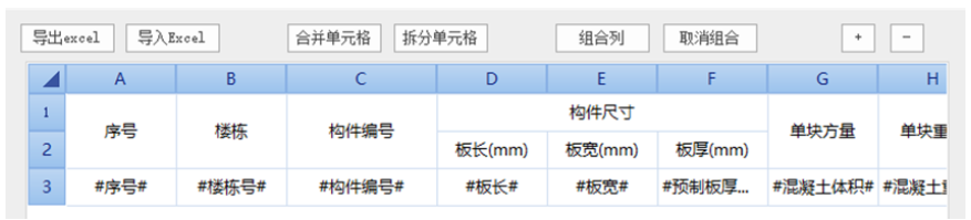 【重复行】内的单元格内容将以构件为单位重复输出,普通文本按行输出,函数读取构件信息表达。