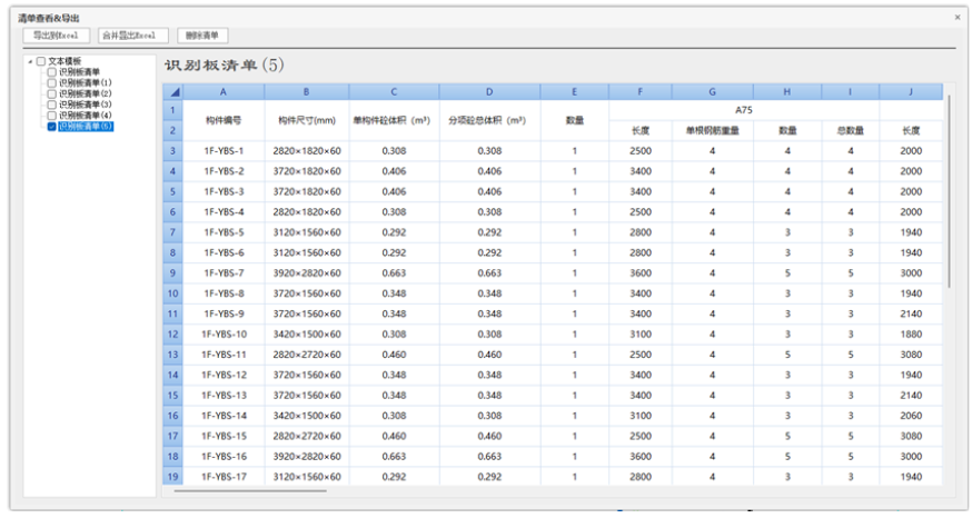 列表前的复选框配合左上角的【导出Excel】、【合并导出Excel】和【删除】使用。【导出Excel】:将复选框勾选的清单表全部导出,每项作为一个文件导出。将清单表格名称作为导出的文件名。【合并导出Excel】:将复选框勾选的清单表全部导出,所有项合并为一个文件导出。选中此种导出,需要指定合并的文件名,清单名称作为表格内的工作簿名称。【删除清单】:删除勾选的清单表格。