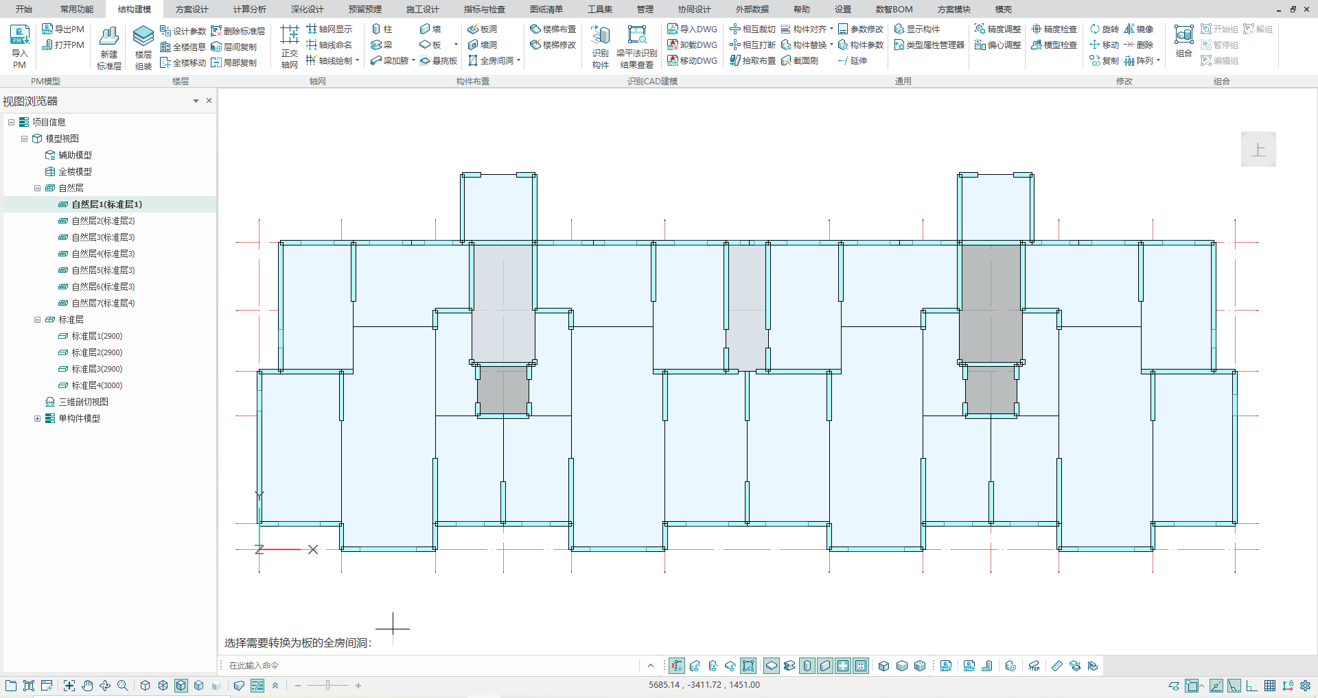 使用移除全房间洞功能,可以选择需要转化为板的全房间洞,把全房间洞转化为结构板