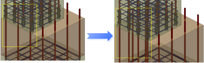 俯视图下,框选或点选上层柱钢筋小圆点(黑色),右键确认即可,处理成功后钢筋呈上图黄色框区域。