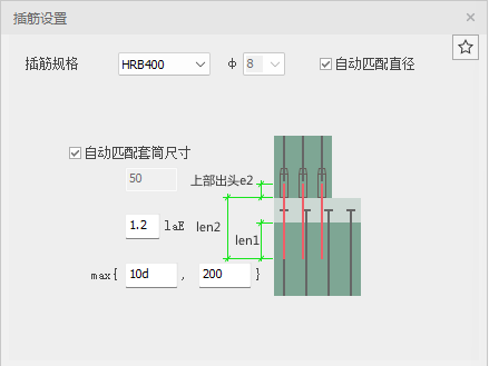 【钢筋直径】:可勾选自动匹配直径,自动匹配上层钢筋直径。