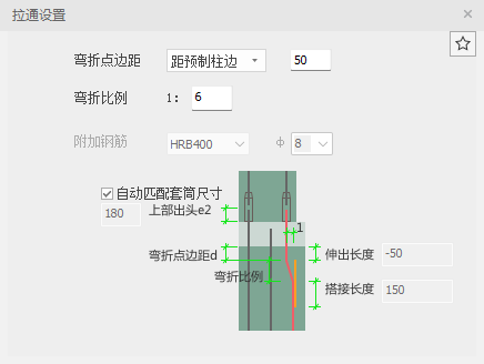 勾选自动匹配套筒尺寸,根据上层柱套筒情况,自动设置上部出头长度。