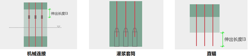 【上部端头形式】:分为【机械连接】、【灌浆套筒】和【直锚】和三种端头形式。