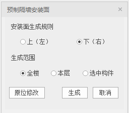 点击【原位修改】进入原位修改模式,该模式中支持按照生成规则生成隔墙安装方向、生成范围的选择和安装方向的原位修改。