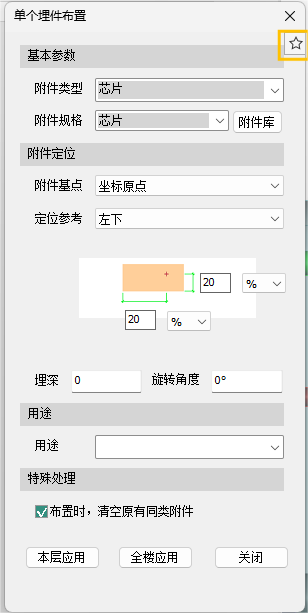 应用范围有【选择构件】、【本层应用】和【全楼应用】三种,默认对选择构件生效,同时支持本层应用和全楼应用,批量完成芯片等附件设计。