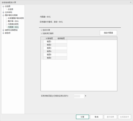 1)勾选自动计算,并指定内隔墙范围(指定操作同上)