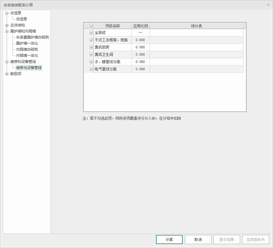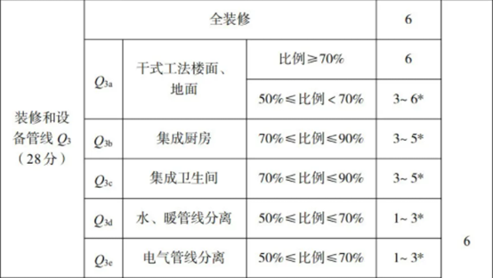 勾选,则按比例给分计入分子Q3项;不勾选,则计入分母扣除项Q5中,扣除分值按现有得分的最高分数扣,例如没勾选竖向管线分离,则Q5=3.0。