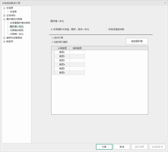 1)选择采用“墙体与保温、隔热、装饰一体化”或“墙体与保温、隔热一体化”