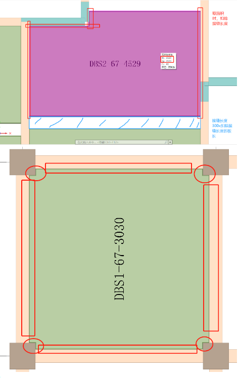 若勾选,则需要扣除与梁、柱、墙搭接部分的面积,如下图所示: