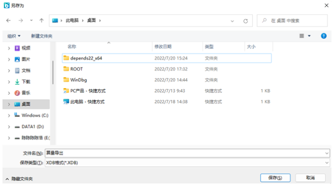 【浏览】点击浏览将弹出选择文件夹对话框,保存类型为XDB格式,如下图所示。