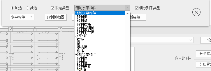 使用【加选】、【减选】对构件进行增加与扣除,进行数值联动。