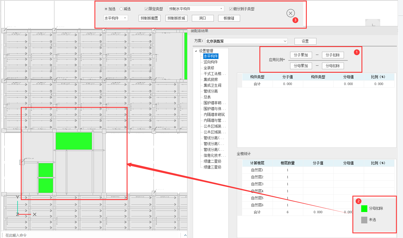 点击【方案模块】-【装配率计算】,弹出如图所示对话框。