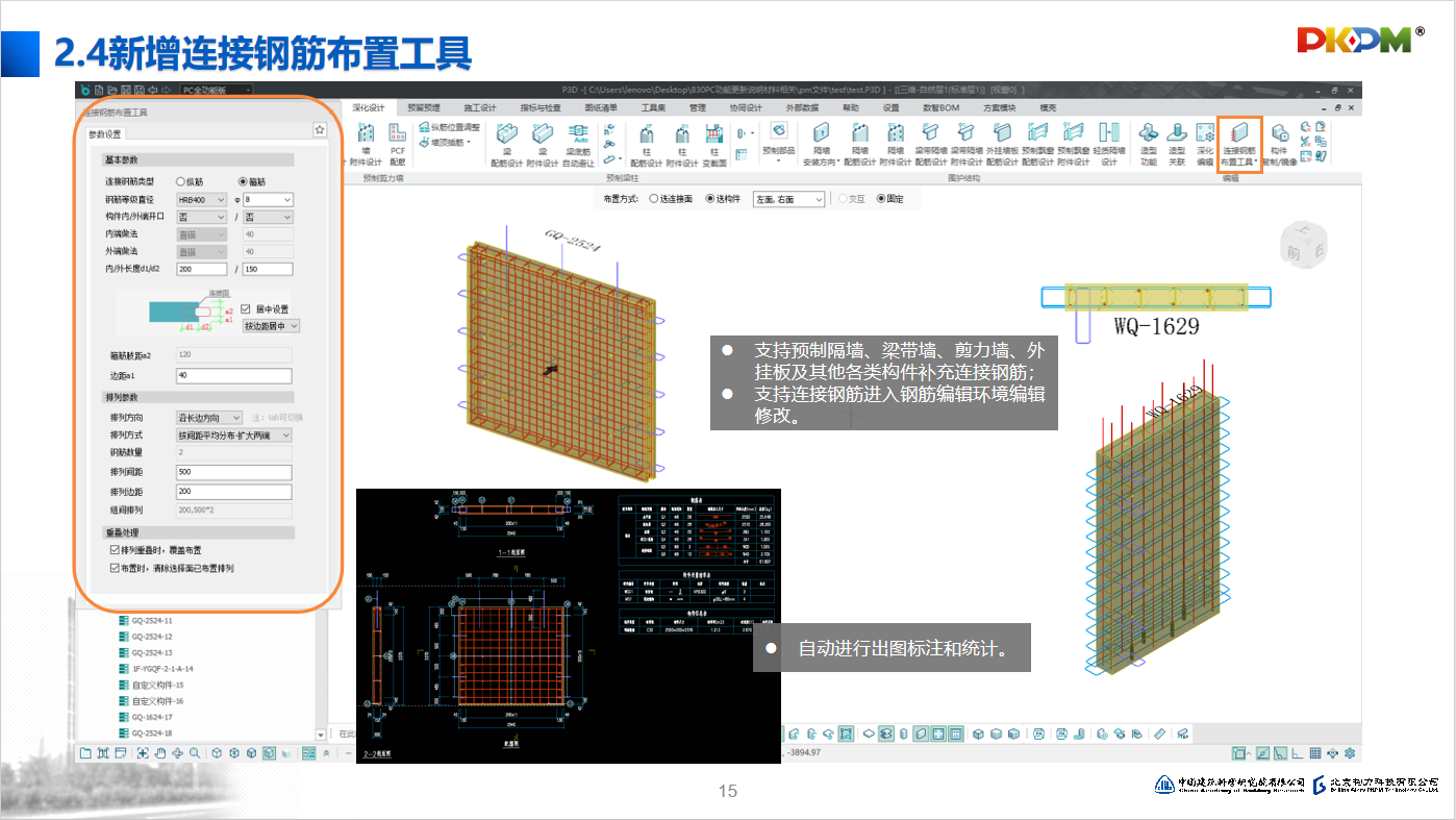 新增连接钢筋布置工具