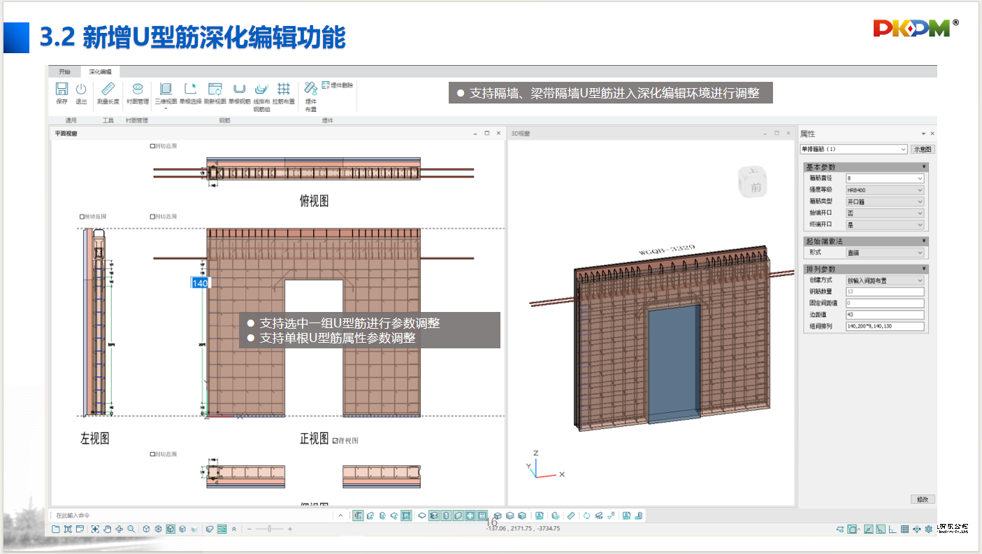 3.2 新增U型筋深化编辑功能