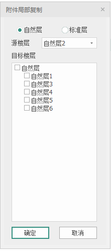 该功能支持选中附件的标准层到标准层的复制和自然层到自然层的复制。选中附件后点击【确定】复制。