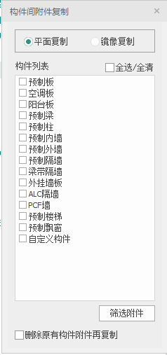 【筛选附件】:支持构件的附件筛选,可以区分附件类型批量复制。