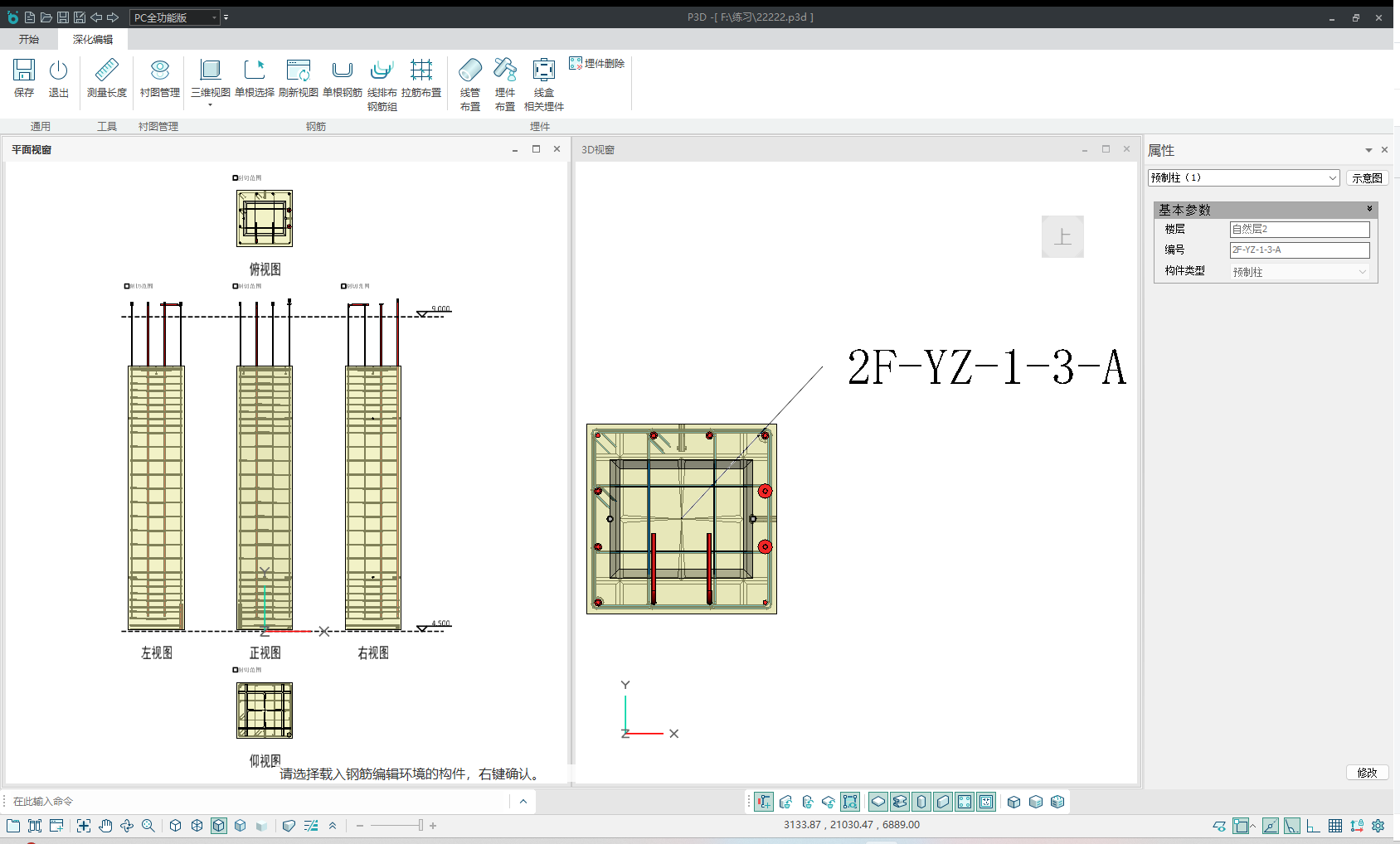 方法二:选中构件后右击鼠标,进入深化编辑界面。