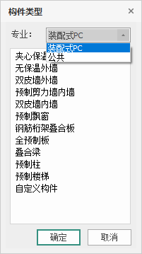 【专业】:分为【装配式PC】与【公共】,可选自定义构件的构件类型。