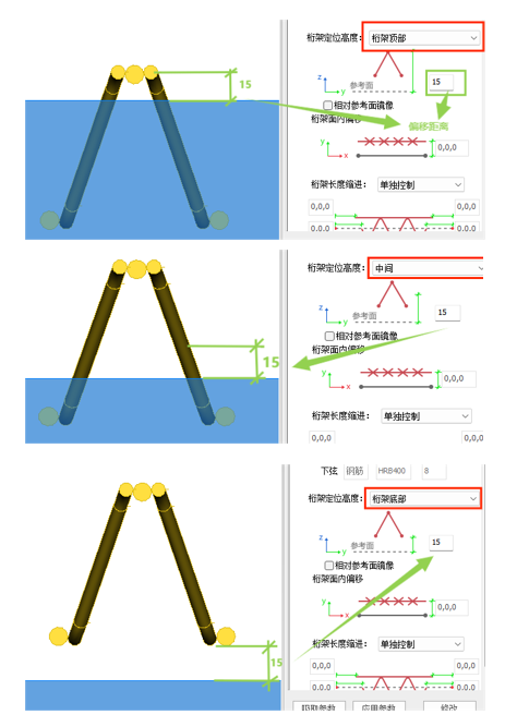 【桁架定位高度】:有【桁架顶部】、【中间】、【桁架底部】三种定位高度。