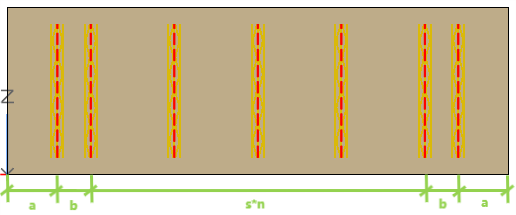钢筋从起点位置到终点位置按s值开始排布,最后一个a’<s,余数放在最后一个间距上。