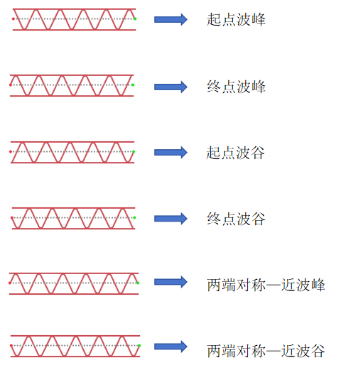 【起/终点】:有【起点波峰】、【终点波峰】、【起点波谷】、【终点波谷】、【两端对称—近波峰】、【两端对称—近波谷】6种。