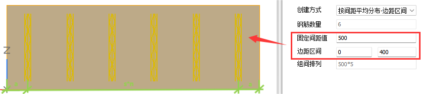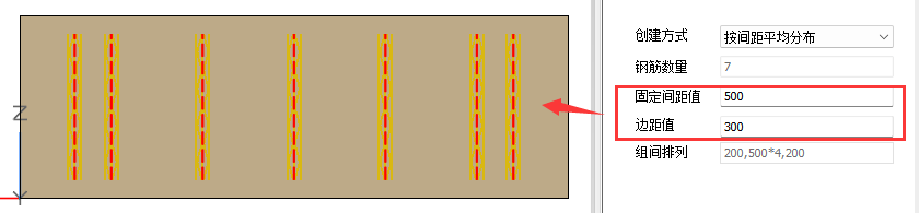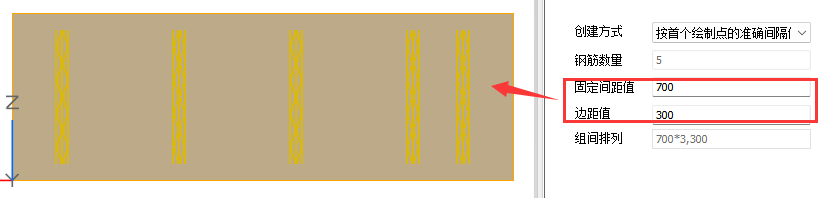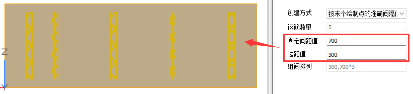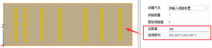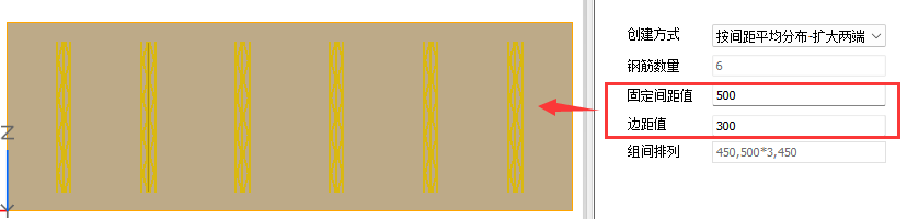 【按输入间距布置】:可对【边距值a】和组间排列进行修改,在组间排列中手动输入每根钢筋的间距值。