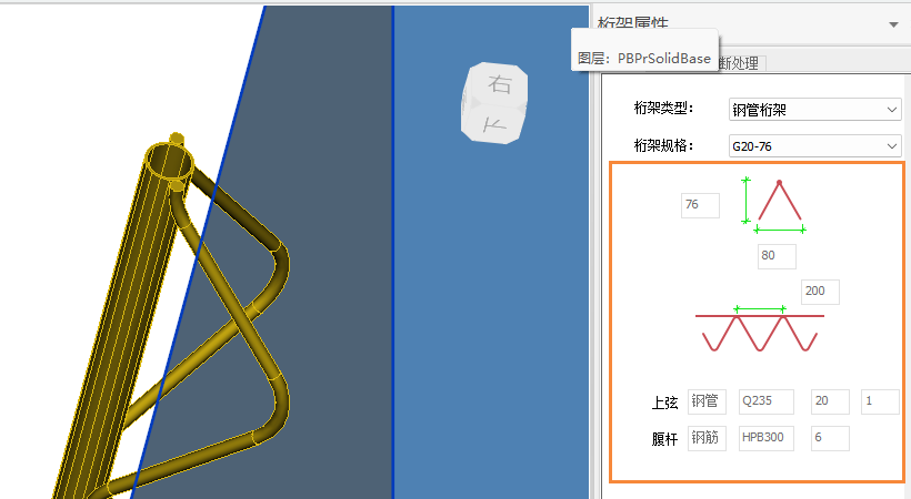 【钢管桁架规格】:各参数置灰,无法手动调整,根据桁架规格自动调整。
