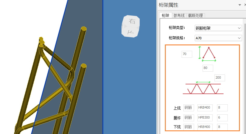 【钢筋桁架规格】:各参数置灰,无法手动调整,根据桁架规格自动调整。