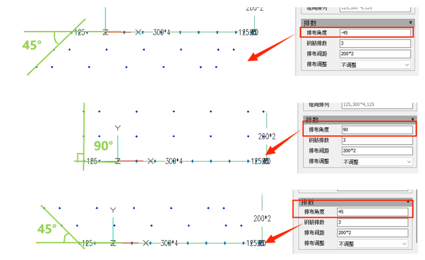 【排布角度】:可自定义纵筋排的排布角度,输入角度范围为【-180,180】内的整数。