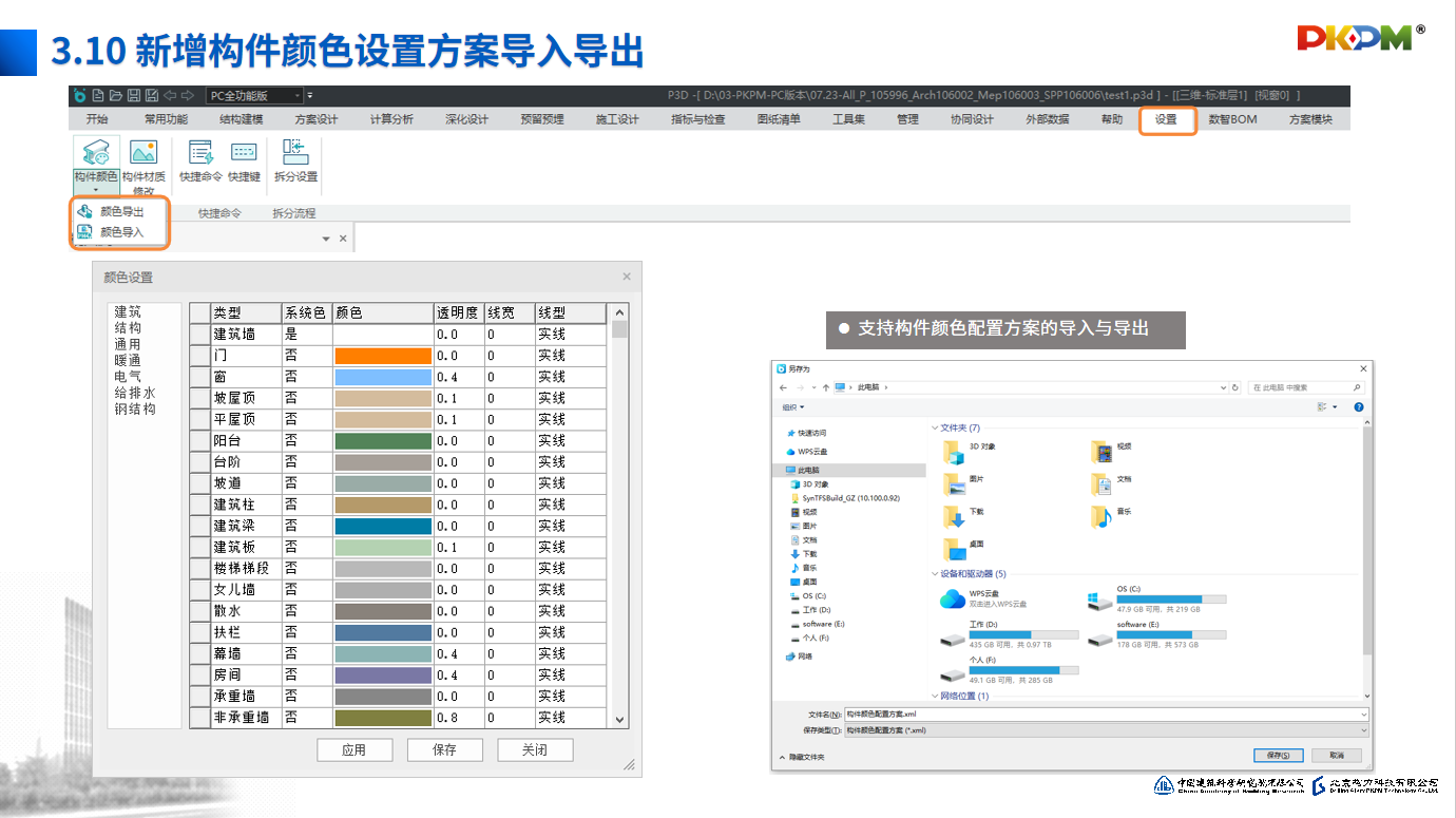 • 3.10新增构件颜色设置方案导入导出