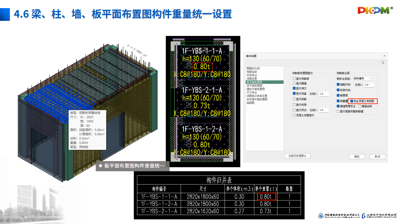 4.6梁、柱、墙、板平面布置图构件重量统一设置