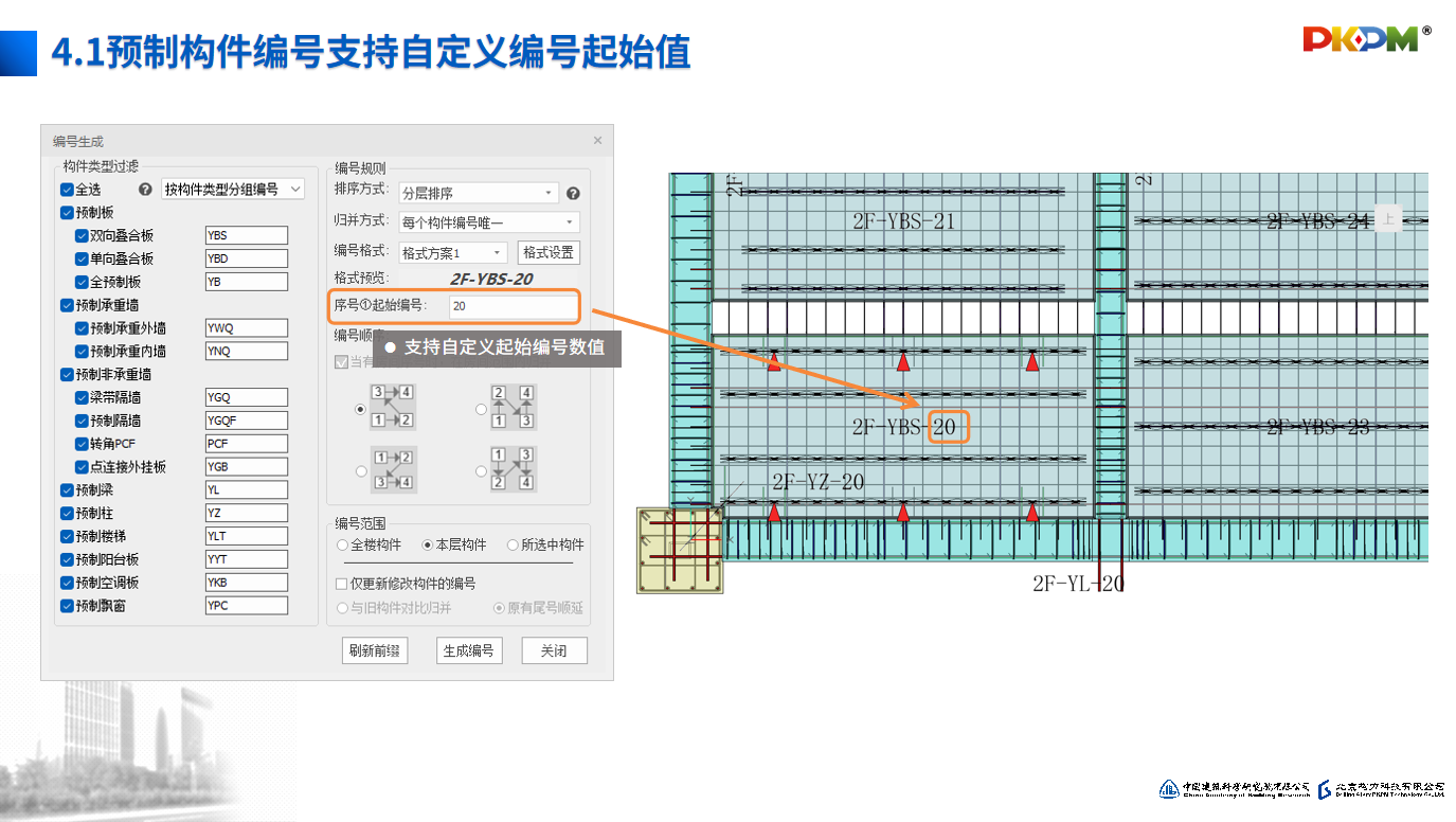 • 4.1预制构件编号支持自定义编号起始值