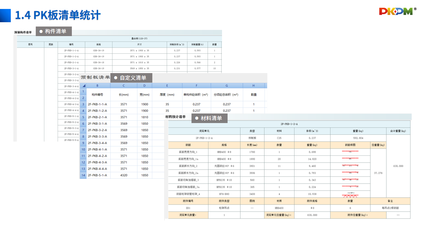 • 1.4 PK板清单统计