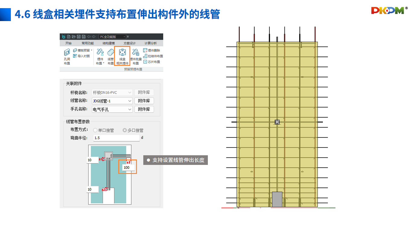 • 4.6 线盒相关埋件支持布置伸出构件外的线管