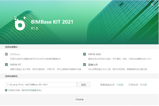 注意:为正常使用PKPM-PC,需要同时勾选“PKPM-BIM”和“PKPM-PC”。