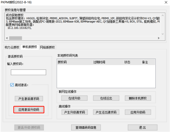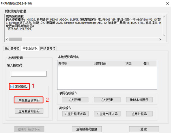 当授权的计算式没有连接 Internet 网,可以通过离线激活来激活本机授权,选择见下图: