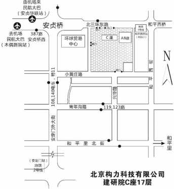 建研院北门(正门):北三环东路30号,安贞桥向东200米路南。